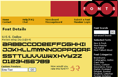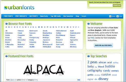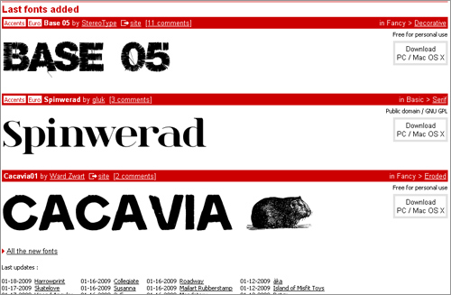 Urban Fonts is a great site. I especially like the ability to preview what your text will look like prior to downloading. I use it frequently to match fonts that I get and can’t quite recognize right away. A great site!