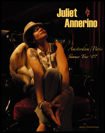 Juliet Annerino is a singer and composer of jazz, neo-soul and lounge. Her first foray into performing began in the subways of Chicago, where she learned to perform for a diverse and challenging audience. Her talent has taken her across the world and she has performed at concert halls, nightclubs, festivals, theaters and private events in Chicago, San Francisco, Beverly Hills, Las Vegas, New York City, Los Angeles, Cairo(Egypt), Amsterdam(Holland), Paris(France), Goa(India), Madrid (Spain), Rome (Italy) and Beirut (Lebanon).