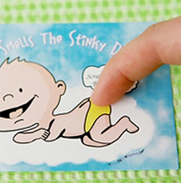 I do a lot of party planning for my friends and the next one I have coming up is a baby shower for my bestest of all bestest of friends. She’s a paper lover like me, so the usual Evite won’t do; it’s got to be old-fashioned invites sent through the mail! I’m wracking my brain for cool ideas, and an ad for perfume caught my eye… er… nose! Wouldn’t baby powder–scented invitations be so fitting?!