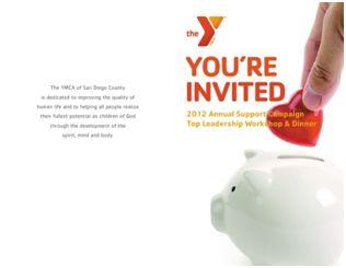 1. Annual Support Campaign Top Leadership Workshop invitations. The Y took advantage of the free shipping offer to save money when ordering these folded cards. This workshop is the kickoff to the largest fund drive of the year benefiting all programs and services across the entire YMCA of Diego County.