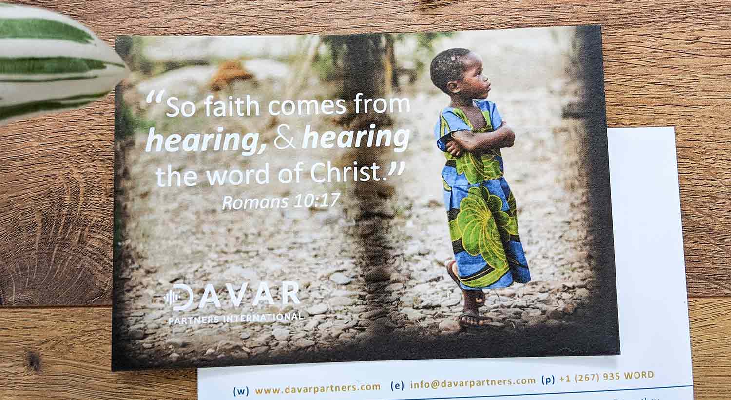 “A group of people with a heart for Christian missions started Davar Partners International in 2009. They recognized a vastly unreached people group: the global oral population. These are people that don’t read (or simply prefer to listen) and cannot interact with the Bibles that past missionaries gave them.