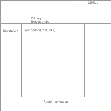 • Primary navigation can appear in the left column or at the top of a web page. Primary navigation represents all of the top-level major groups of information on a website.